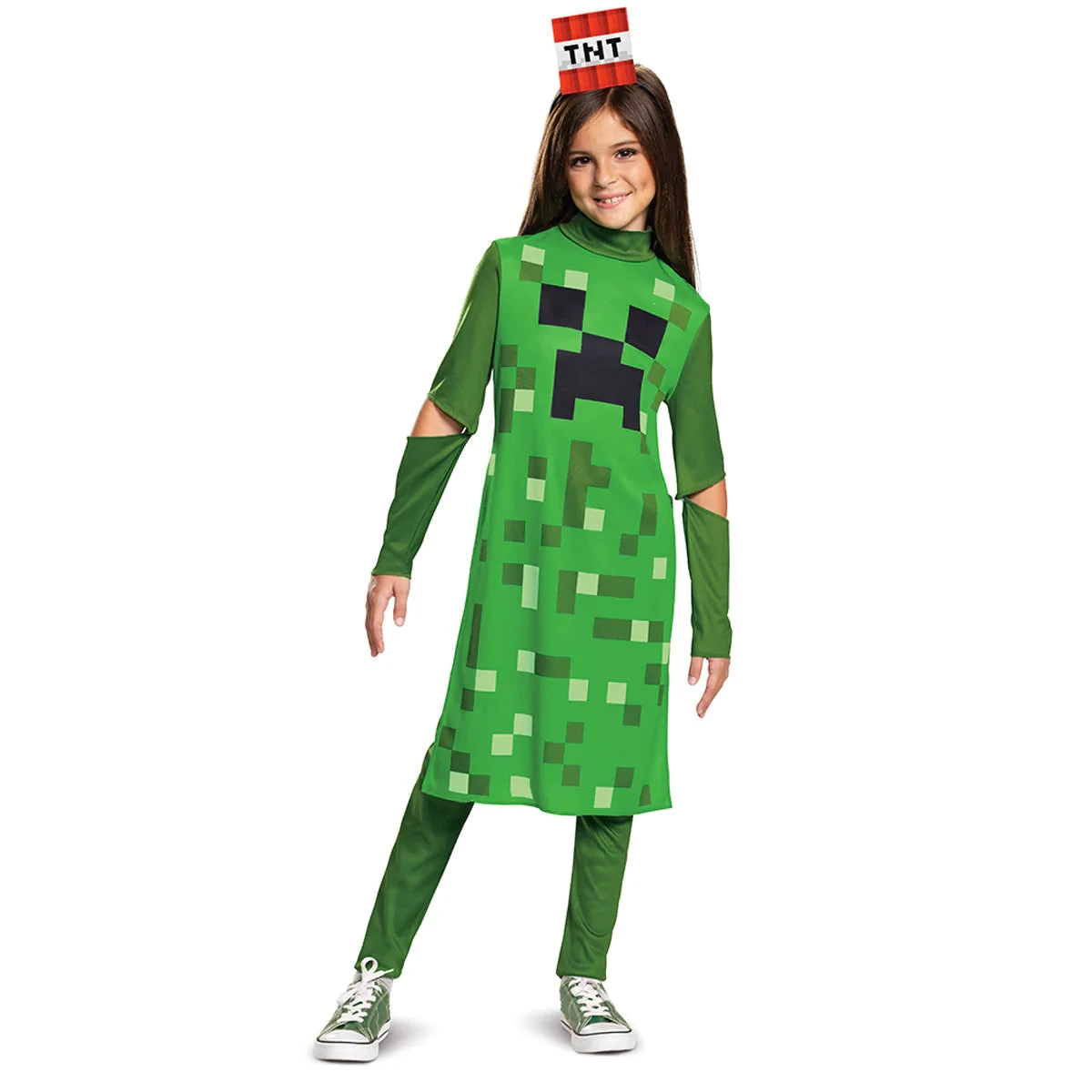Spawn into your favorite character from the famous game “Minecraft” this Halloween in this Creeper girl classic costume!
