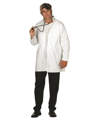 This white doctor’s lab coat will work for a physician or mad scientist. One size fits most standard adults. 48″ Chest, 34″ long. 100% poly poplin. Unisex