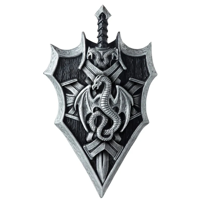 Battle with the might of a dragon by your side. This Dragon Lord Shield & Sword set includes a sword about 22 inches long which can be stowed in a roughly 21″ long by 14 1/2″ wide shield.