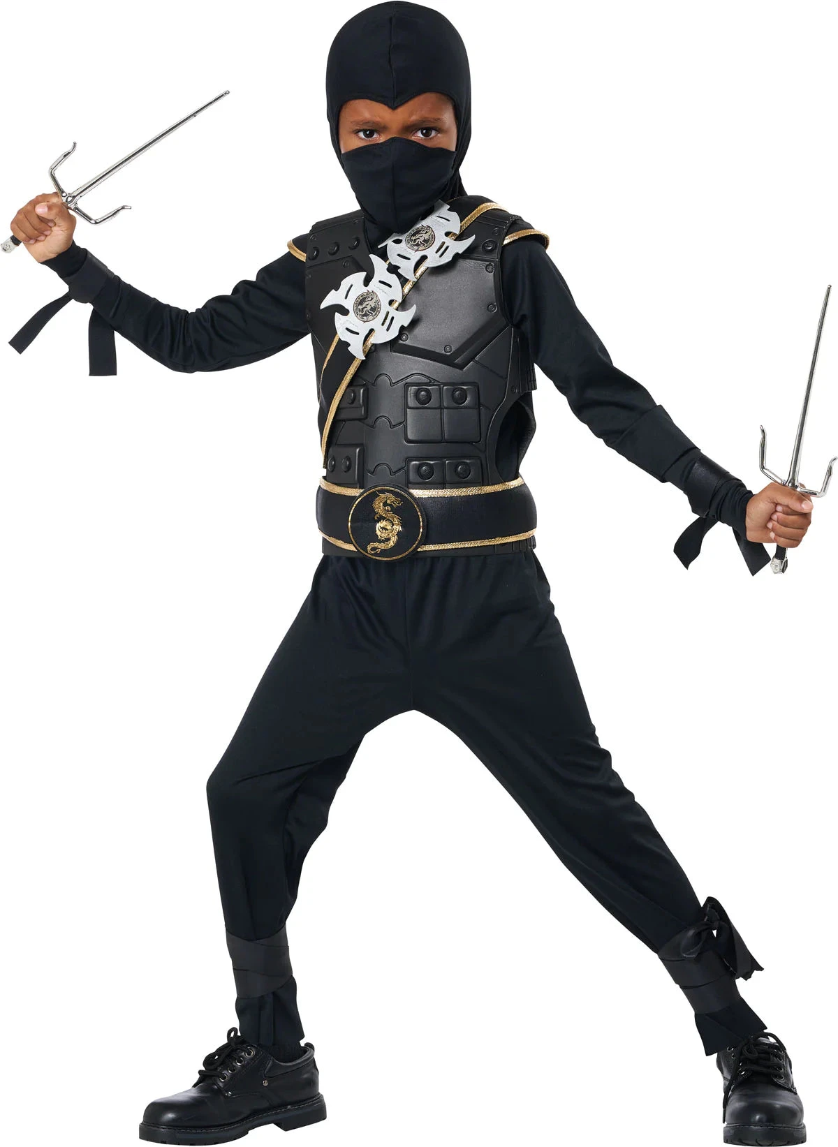Transform your kid into a stealthy ninja with this Elite Ninja Costume. Featuring pants, shirt, hood, belt and foam chest piece with intricate details including ninja stars, this costume will have them looking their sharpest and making their presence felt. It’s perfect for dress-up days and other special occasions!