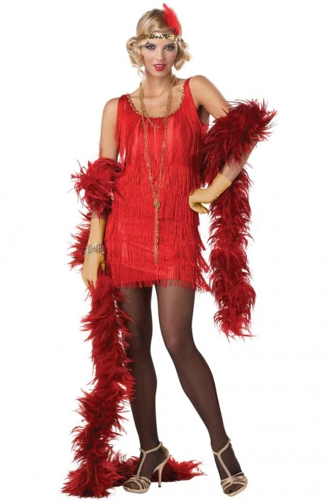 Get roarin’ with our Fashion Flapper costume for adults at your next Gatsby party! Travel back in time to the famous 20’s this Halloween and impress your friends with feathers and fringe. This fun dress comes in black or red, or so you can choose between a classic chic look or being daring and bold!