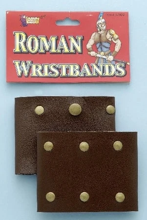 Accent your Roman soldier or gladiator costume with these dark brown leather-look wristbands with metal studs.
