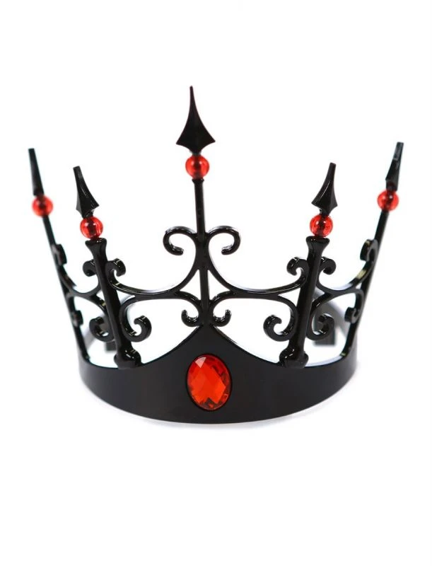 This stunning black crown, adorned with vibrant red jewels, exudes elegance and power. Command attention and make a statement with this eye-catching accessory. Perfect for formal events, photo shoots, or cosplay. Rule over any occasion with the Black Crown with Red Jewels!