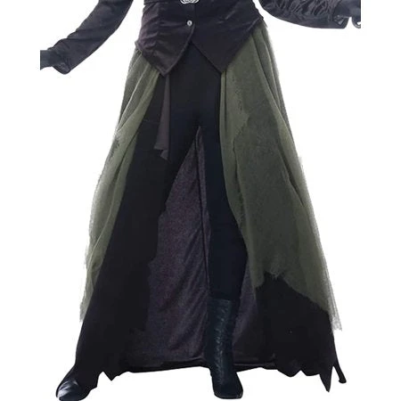 Spells and magic for all your needs for a price you might not heed. The Gothic Witch plus size costume includes a button down jacket, a long skirt, a green and black layered overskirt which can also be worn as a cape, a belt with decorative buckle, two hat ties and a two piece easy to assemble witch hat.