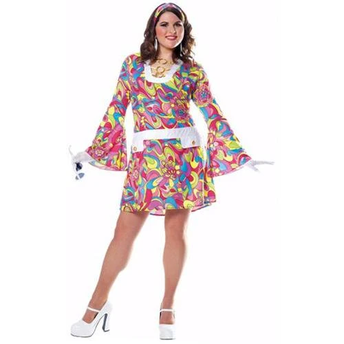 Fashions of the past always find a way to be the fashions of the present. This Plus Size Groovy Chic Costume features a psychedelic print mod style dress with a matching headband. This type of outfit was extremely popular during the 1960’s and though clothes today don’t look exactly like this, we do have similar outfits. This costume is ideal for Halloween or a retro themed party.