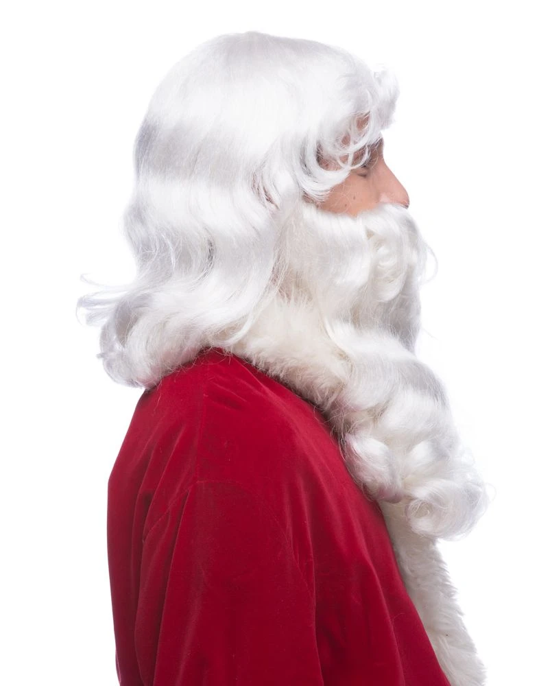 This Kanekalon Santa Claus wig and beard set features a built in wire-in moustache for a comfortable and precise fit. Fully washable – half cloth backing for additional fullness in the beard.