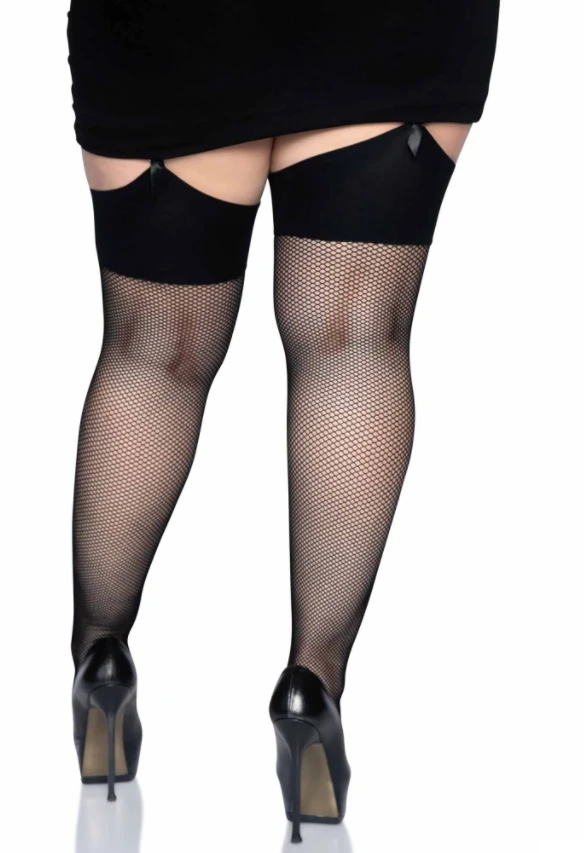LEG AVENUE Black Fishnet Thigh High Stockings – Plus Size