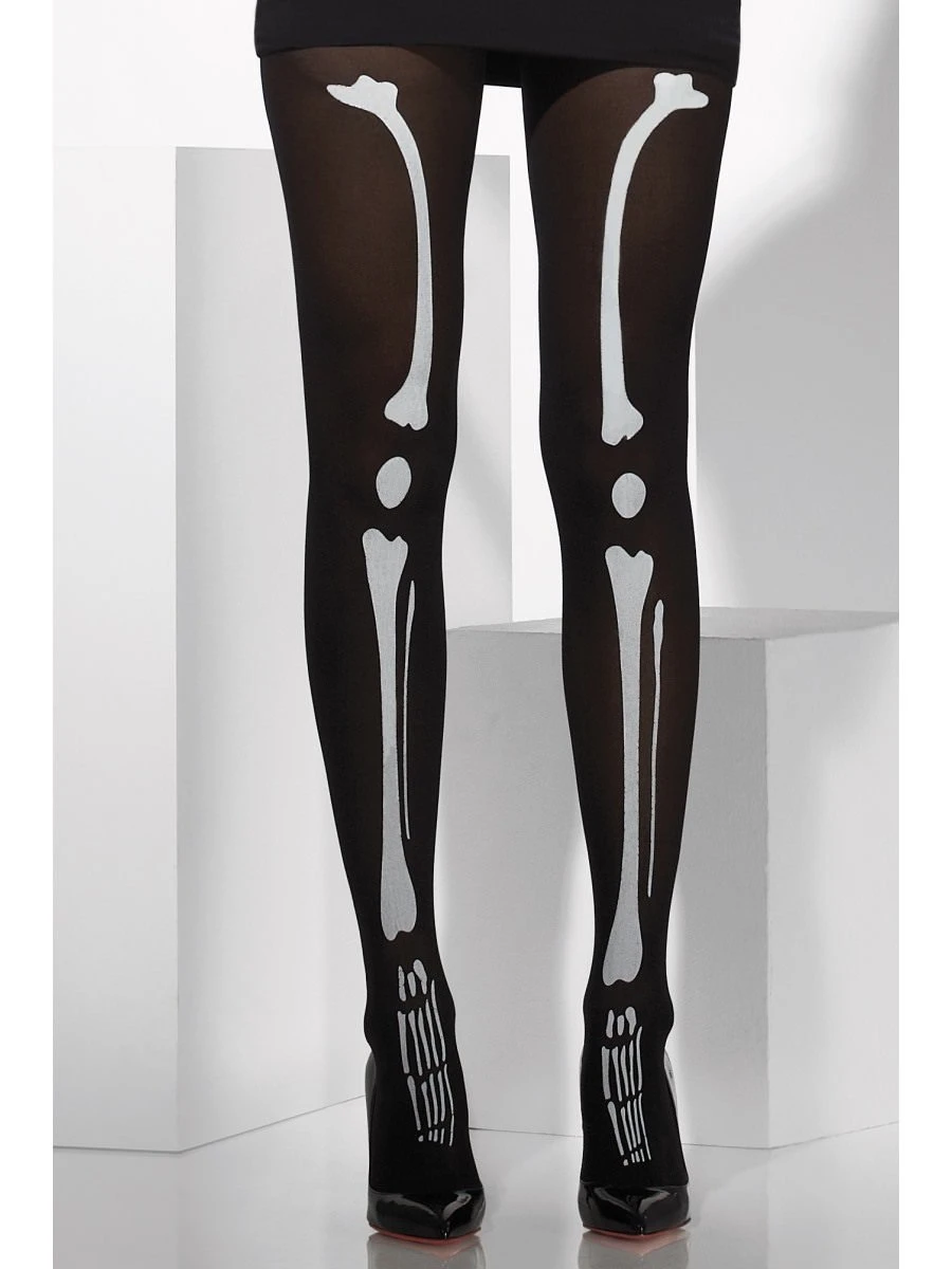 Complete your look with a pair of Opaque Black with Skeleton Print Tights; the perfect accessory to any Halloween outfit.