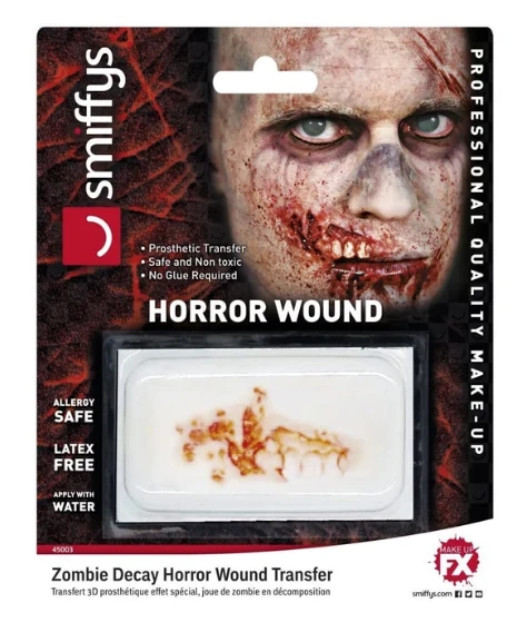 This prosthetic transfer is allergy free and latex free, simply apply with water, no adhesives needed!