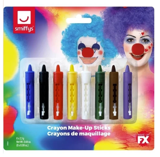 These Retractable Crayon Makeup Sticks are great for all ages! Includes 8 colors: Blue, Black, Red, Yellow, White, Green, Brown and Purple.