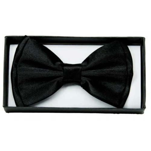 These very nice quality satin bow ties will have you looking very distinguished! Individually boxed. Each has an adjustable band with clasp which makes for an easy fit for all sizes!
