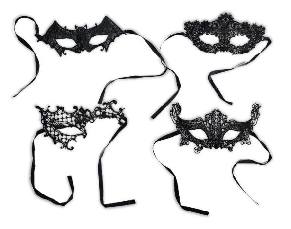 Unleash your inner mysterious charm with our structured black lace half mask! Made with intricate designs and a comfortable ribbon tie, it’s perfect for adding a touch of elegance to any costume. Get ready to turn heads and exude confidence at your next event. These masks are sold assorted only but are sold individually. When purchasing more than one you will receive multiple assorted styles. When purchasing one piece you will receive a random style of our choice.