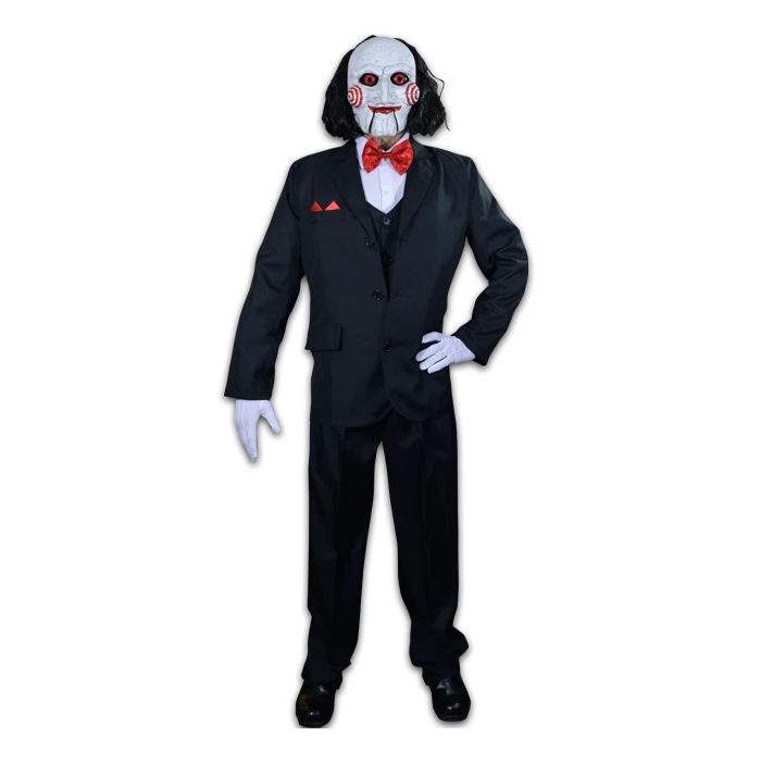 So, get yourself our Officially licensed Billy Puppet costume and Mask and ask Trick or Treaters if they want to play a game on Halloween Night!